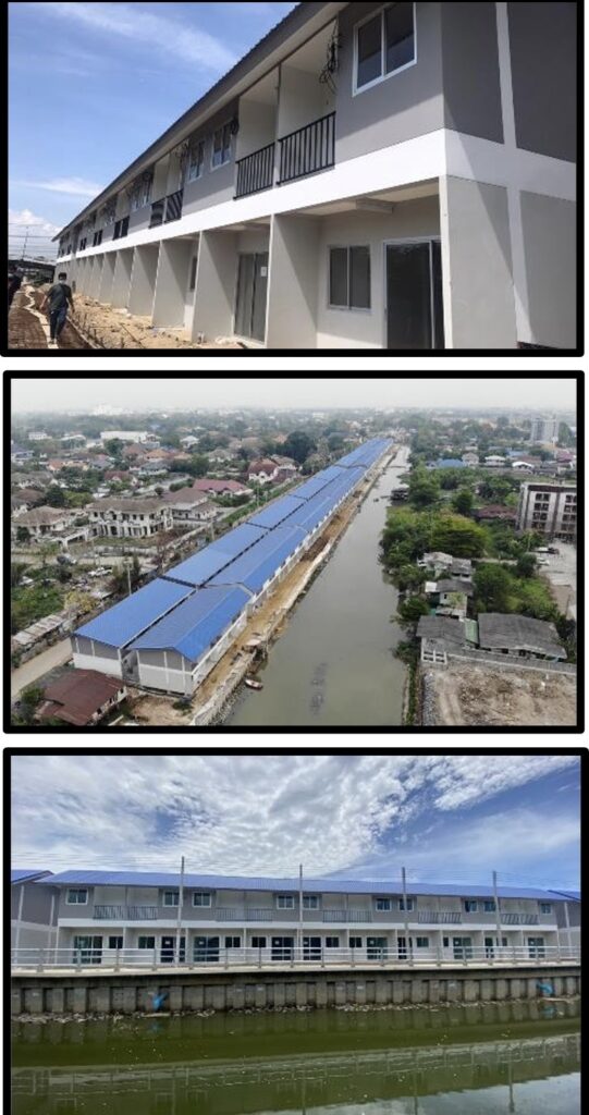 - (1) สร้างเสร็จ 634 ครัวเรือน คิดเป็นร้อยละ 9.93 ของครัวเรือนทั้งหมด (จตุจักร 356 ครัวเรือน หลักสี่ 88 ครัวเรือน และ ต.หลักหก จ.ปทุมธานี 190 ครัวเรือน)