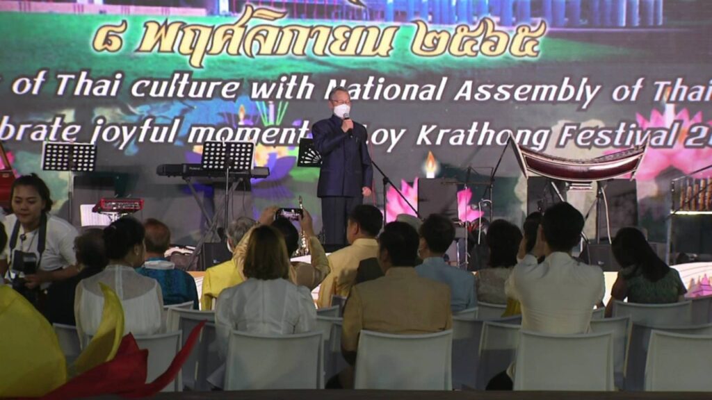รัฐสภา 8 พ.ย. – “ชวน” เปิดงานลอยกระทงรัฐสภา เผยอยากเอาปัญหาประเทศและโลกลอยออกไปด้วย ด้านทูตานุทูต สมาชิกรัฐสภา ร่วมสืบสานประเพณีไทย
