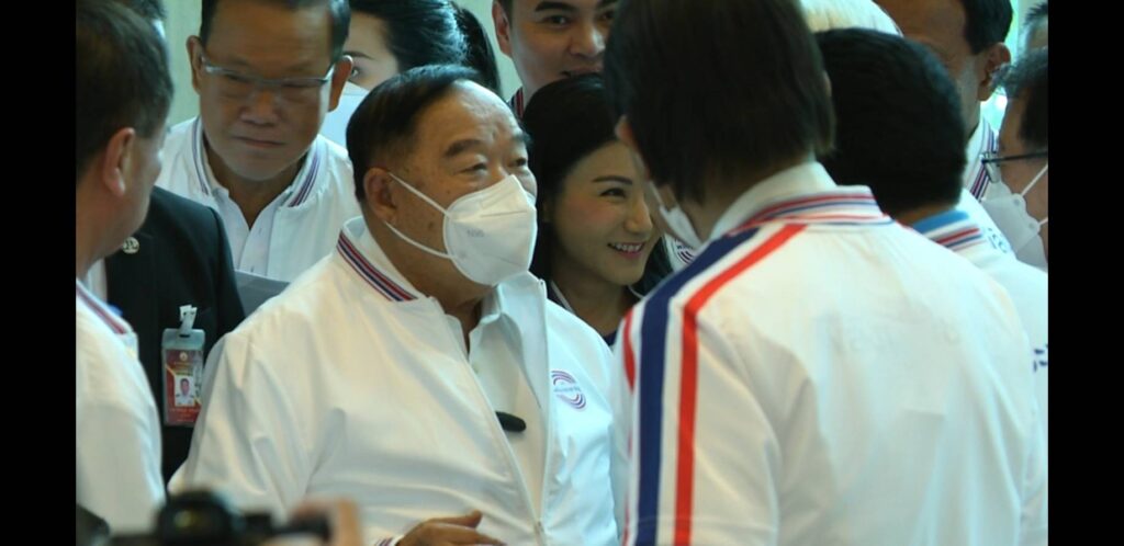 โรงแรมรามาการ์เด้น 11 พ.ย.-“พล.อ.ประวิตร” ลาราชการ ร่วมสัมมนา พปชร. ยัน ส.ส.ยังอยู่ครบ มั่นใจไม่ย้ายพรรค หวังเป็นแกนนำจัดตั้งรัฐบาล ยังไม่เคาะใครเป็นแคนดิเดต ชี้ “พล.อ.ประยุทธ์” ไม่ได้เป็นสมาชิก แต่หนุน เพราะพรรคเคยเสนอชื่อ