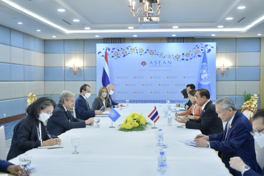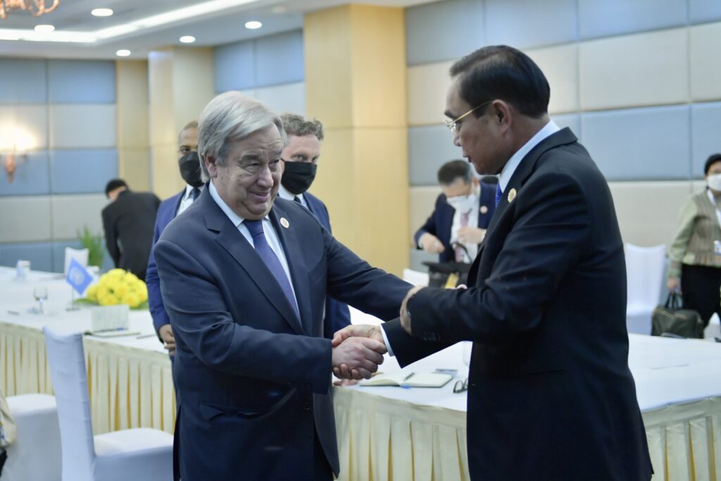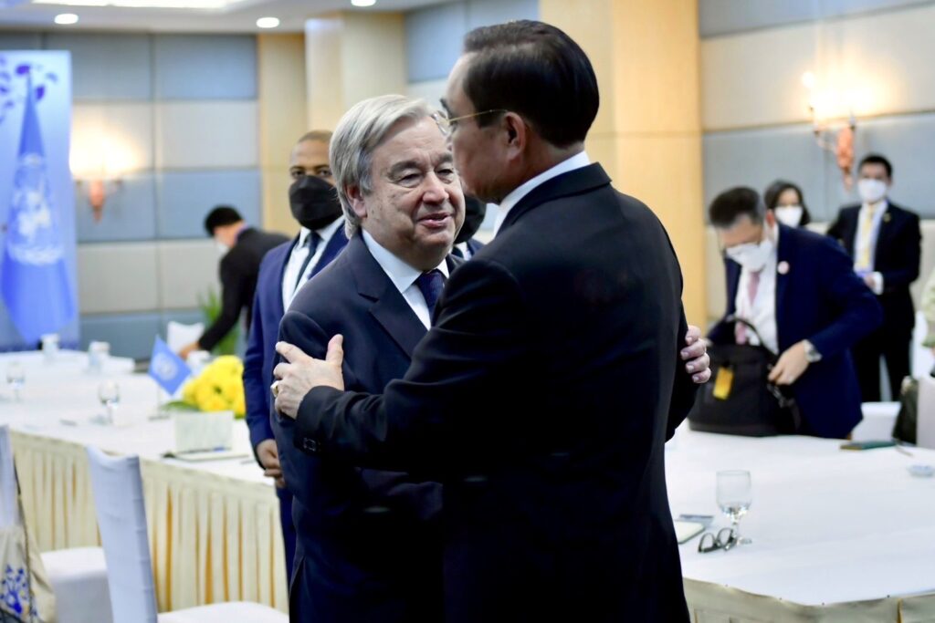 นายกรัฐมนตรีกล่าวยินดีที่ได้พบเลขาธิการสหประชาชาติอีกครั้ง ยืนยันถึงความเชื่อมั่นของไทยในระบบพหุภาคี มีสหประชาชาติเป็นศูนย์กลาง โดยไทยมุ่งมั่นร่วมมือ เพื่อสนับสนุนสหประชาชาติในการรับมือกับปัญหาและความท้าทายของโลก พร้อมกล่าวสนับสนุนข้อริเริ่มในรายงาน Our Common Agenda เพื่อให้ทุกภาคส่วนสามารถบรรลุ SDGs