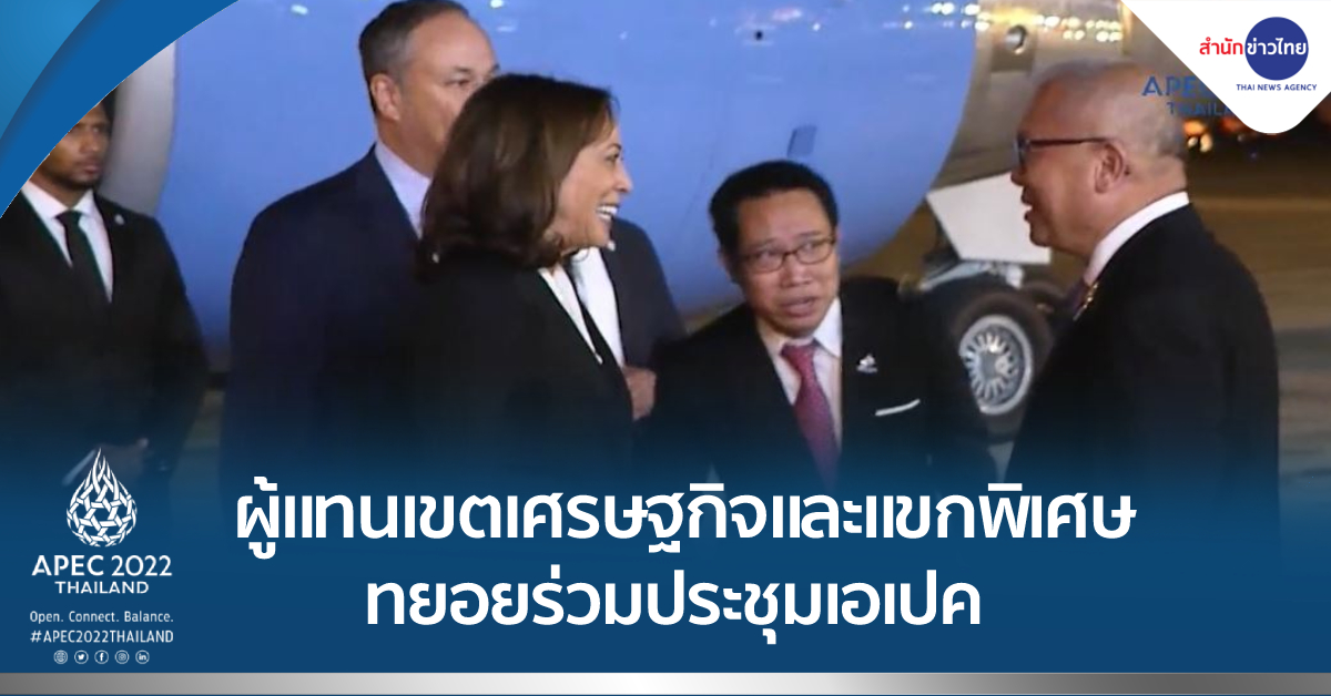 กรุงเทพฯ 18 พ.ย. – ผู้แทนเขตเศรษฐกิจและแขกพิเศษ ทยอยเดินทางเข้าร่วมประชุมผู้นำเขตเศรษฐกิจเอเปค 2022 เมื่อช่วงค่ำวานนี้ (17 พ.ย.)