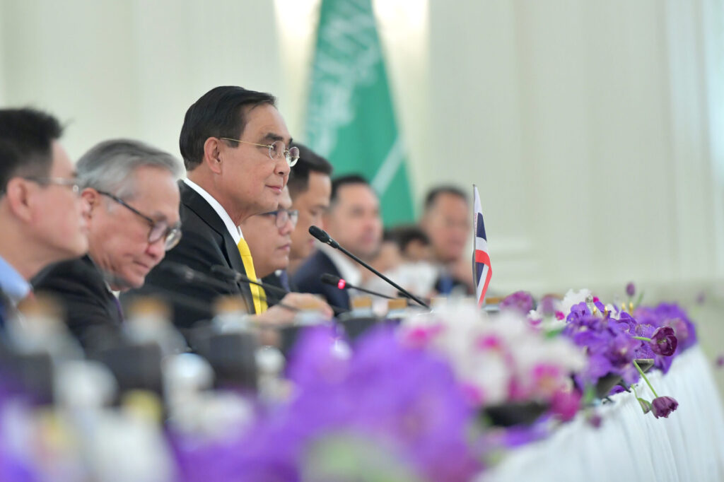 นายกรัฐมนตรี ซาบซึ้งสำหรับการตอบรับการเสด็จพระราชดำเนินเยือนไทยอย่างเป็นทางการ และการตอบรับเข้าร่วมการประชุมเอเปค ในฐานะแขกพิเศษของไทย พร้อมกล่าวถวายพระพรชัยมงคลแด่สมเด็จพระราชาธิบดีแห่งราชอาณาจักรซาอุดีอาระเบีย และแสดงความยินดีที่มกุฎราชกุมารแห่งราชอาณาจักรซาอุดีอาระเบียทรงได้รับการแต่งตั้งให้เป็นนายกรัฐมนตรี โอกาสนี้ นายกรัฐมนตรี ย้ำถึงความพร้อมของไทยที่จะทำงาน เพื่อส่งเสริมความสัมพันธ์ทวิภาคีระหว่างทั้งสองประเทศ โดยยินดีที่ความร่วมมือทวิภาคีในทุกด้านมีความคืบหน้า และมีการแลกเปลี่ยนการเยือนระหว่างกันในทุกระดับ