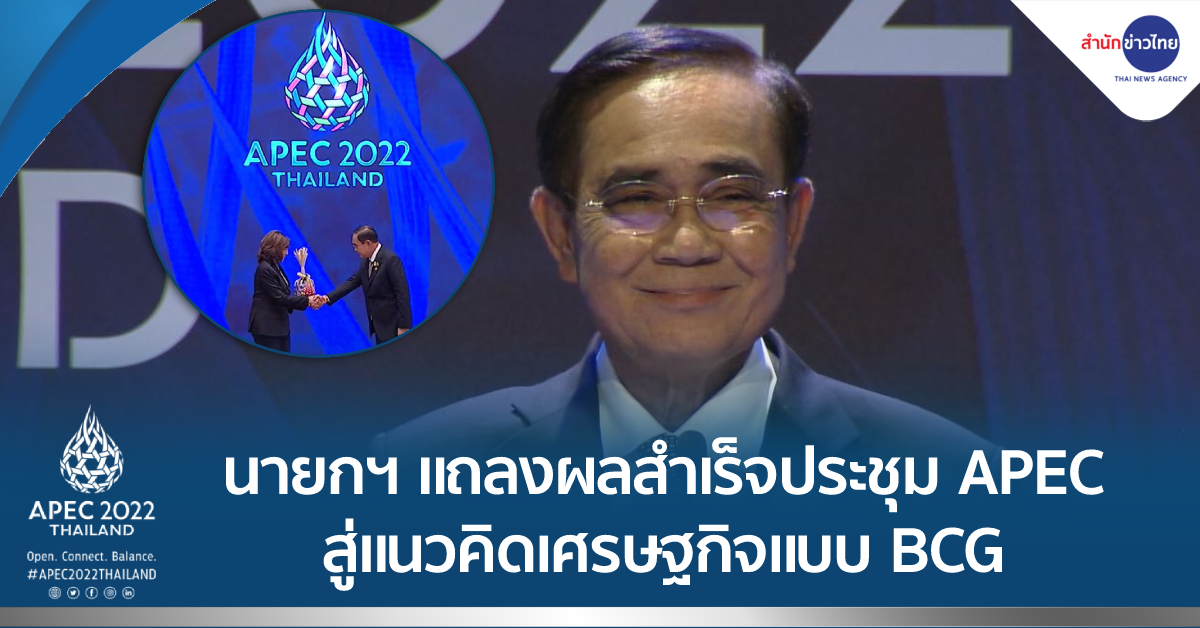 กรุงเทพฯ 19 พ.ย. – เจ้าภาพเอเปค 2565 ของไทย ด้วยความภาคภูมิใจ ก้าวสู่ความสำเร็จตามแนวคิดเศรษฐกิจแบบ BCG ยืนยันผลลัพธ์เปิดกว้าง สร้างสัมพันธ์ เชื่อมโยงกันสู่สมดุล.-สำนักข่าวไทย