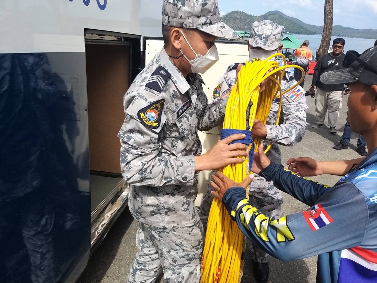ผู้สื่อข่าวรายงานความคืบหน้าล่าสุดในส่วนของกองทัพเรือ กับปฏิบัติการกู้ร่าง “น้องมาวิน” ว่า เมื่อเวลา 10.30 น. วันนี้ (20 พ.ย.65) ชุดต่อต้านทุ่นระเบิดเคลื่อนที่ (ชตค.) จากกองเรือทุ่นระเบิด กองเรือยุทธการ จำนวน 7 นาย เข้าถึงพื้นที่ปฏิบัติการ และอยู่ระหว่างติดตั้งอุปกรณ์ Side Scan Sonar เพื่อสร้างภาพใต้น้ำ ในขณะที่เจ้าหน้าที่ประดาน้ำ จากกรมสรรพาวุธทหารเรือ เข้าพื้นที่และอยู่ระหว่างการวางแผนร่วมกับนายแพทย์เวชศาสตร์ใต้น้ำ และรอรวบรวมข้อมูลที่ได้รับจากการประมวลผลจากอุปกรณ์ Side Scan Sonar มาพิจารณาวางแผนการเก็บกู้ร่วมกัน โดยในเวลา 11.30 น. ร้อยโท ทศพล ไชยโกมินทร์ ผู้ว่าราชการจังหวัดกาญจนบุรี ได้เดินทางไปตรวจเยี่ยมชุดปฏิบัติงานในพื้นที่ โดยมี นาวาเอก ธีรเกียรติ ทองอร่าม รองผู้บัญชาการกองเรือทุ่นระเบิด กองเรือยุทธการ บรรยายแผนการปฏิบัติการ. – สำนักข่าวไทย