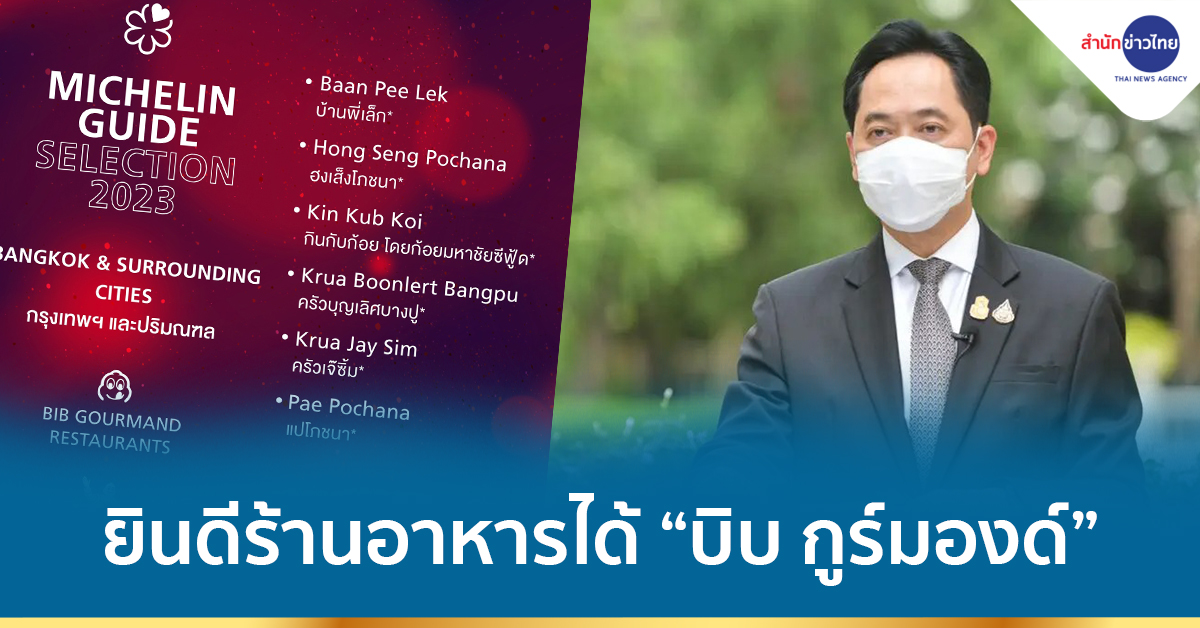 นายอนุชา บูรพชัยศรี โฆษกประจำสำนักนายกรัฐมนตรี เปิดเผยว่า พล.อ.ประยุทธ์ จันทร์โอชา นายกรัฐมนตรีและรัฐมนตรีว่าการกระทรวงกลาโหม รับทราบและยินดีกับร้านอาหารและ Street Food ไทยที่ได้รับการคัดเลือกจากมิชลิน ไกด์ (MICHELIN Guide) ประเทศไทย ประจำปี 2566 ให้ได้รับสัญลักษณ์ “บิบ กูร์มองด์” (Bib Gourmand) จำนวน 189 ร้าน สะท้อนศักยภาพและวัฒนธรรมอาหารของไทยที่ได้รับการยอมรับอย่างต่อเนื่อง