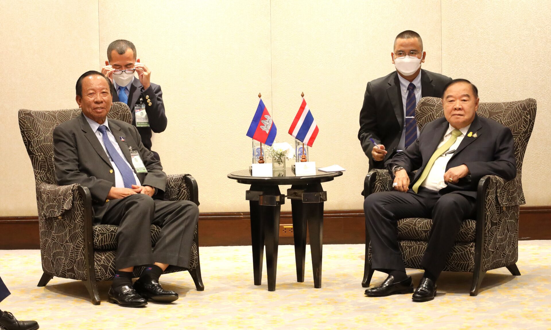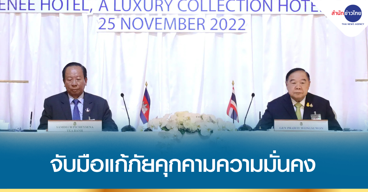 รร.ดิ แอทธินี 25 พ.ย.-“พล.อ.ประวิตร-พล.อ.เตีย บันห์” พร้อมร่วมแก้ปัญหาชายแดนที่กระทบต่อความมั่นคงไทย-กัมพูชา ทั้งอาชญากรรมข้ามแดน ยาเสพติด แก๊งคอลเซ็นเตอร์ไทยที่ใช้กัมพูชาเป็นฐานหลอกคนไทยด้วยกัน