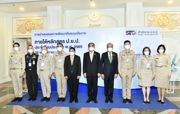 โอกาสนี้ นายกรัฐมนตรีกล่าวมอบนโยบายว่า การนำเสนอผลการพัฒนาต้นแบบนโยบายภายใต้โครงการพัฒนานักบริหารระดับสูง : ผู้นำแห่งการเปลี่ยนแปลง ประจำปีงบประมาณ พ.ศ. 2565 เป็นโอกาสดีในการหารือเพื่อวางแนวทางการพัฒนาและกำหนดนโยบายต่าง ๆ เพื่อขับเคลื่อนไปสู่การปฏิบัติจริงได้อย่างเป็นรูปธรรม โดยเฉพาะการร่วมมือกันระหว่างกระทรวง ลดการทำงานแนวดิ่ง หรือการทำงานแบบไซโล เพิ่มการทำงานแนวราบ และขับเคลื่อนร่วมกันทั้งองคาพยพ ซึ่งหัวใจของการทำงานในปัจจุบัน ต้องมีการปรับตัวและปรับรูปแบบการทำงานให้มีความยืดหยุ่น เพื่อให้พร้อมเผชิญกับความผันผวนไม่แน่นอนและการเปลี่ยนแปลงในมิติต่าง ๆ ที่ส่งผลต่อเศรษฐกิจ และสังคมของประเทศ เช่น ปัญหาความขัดแย้งทางภูมิรัฐศาสตร์และการเมืองระหว่างประเทศ ปัญหาการเปลี่ยนแปลงของสภาพภูมิอากาศ ตลอดจนการเปลี่ยนแปลงทางด้านเทคโนโลยี และการเกิดโรคอุบัติใหม่