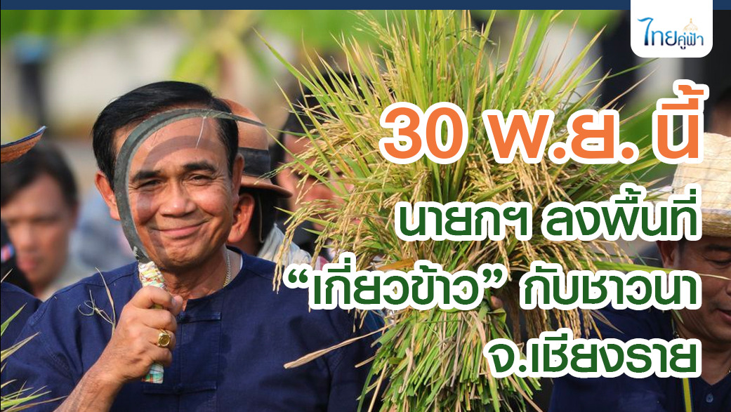 ทำเนียบ 29 พ.ย.-นายกฯ เตรียมลงพื้นที่ จ.เชียงราย วันพรุ่งนี้ (30 พ.ย.) ติดตามโครงการข้าวรักษ์โลก BCG Model นำร่อง ระยะที่ 1 พร้อมเป็นประธานงาน “เกี่ยวข้าวรักษ์โลก”