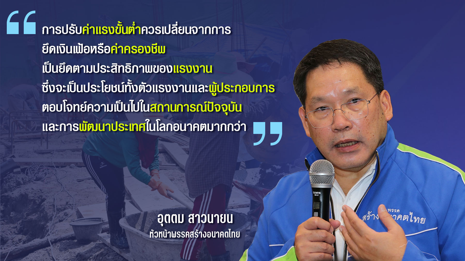นายอุตตม สาวนายน หัวหน้าพรรคสร้างอนาคตไทย โพสต์ข้อความผ่านเฟซบุ๊ก กรณีการเสนอนโยบายปรับขึ้นค่าแรงขั้นต่ำ ว่า ส่วนตัวเห็นว่าประเทศไทยมีความจำเป็นที่จะต้องพิจารณาขึ้นค่าแรงขั้นต่ำ ภายใต้ความสมดุลใน 2 ประเด็นหลัก คือ 1.ปรับเพื่อให้แรงงานสามารถดำรงชีวิตอยู่ได้อย่างมีคุณภาพ สอดคล้องกับต้นทุนค่าใช้จ่ายการใช้ชีวิตในปัจจุบัน 2.ปรับขึ้นค่าแรงต้องไม่กระทบกับผู้ประกอบการ เนื่องจากในภาพรวมผู้ประกอบการส่วนใหญ่ โดยเฉพาะเอสเอ็มอี ยังไม่หายบาดเจ็บจากโควิด และเชื่อว่าจะต้องใช้เวลาอีกระยะหนึ่งกว่าจะฟื้นตัว