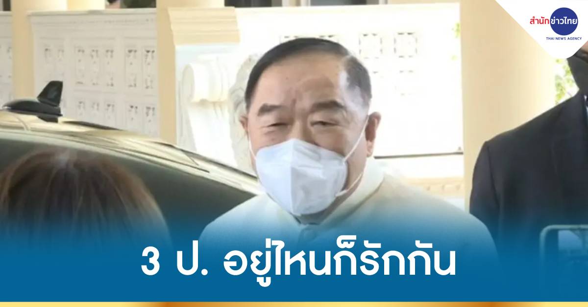 เมื่อถามย้ำว่าพล.อ.ประยุทธ์จะอยู่กับพรรคพลังประรัฐหรือไม่ พล.อ.ประวิตร ย้ำว่าพล.อ.ประยุทธ์ไม่ได้อยู่กับพรรคอยู่แล้ว ส่วนจะสนับสนุนครั้งต่อไปหรือไม่ขึ้นอยู่กับสมาชิกพรรค ยังไม่รู้เลยว่าจะทาบทามพล.อ.ประยุทธ์อีกหรือไม่ ซึ่งไม่ว่าจะอยู่ที่ไหนก็รักกันเหมือนเดิม ส่วนที่เคยระบุว่า 3 ป.มาด้วยกันก็ต้องไปด้วยกัน และจะไม่มีวันแตกจากพล.อ.ประยุทธ์ก็ไม่ได้แตก ไม่ได้แยกทางกันเดิน