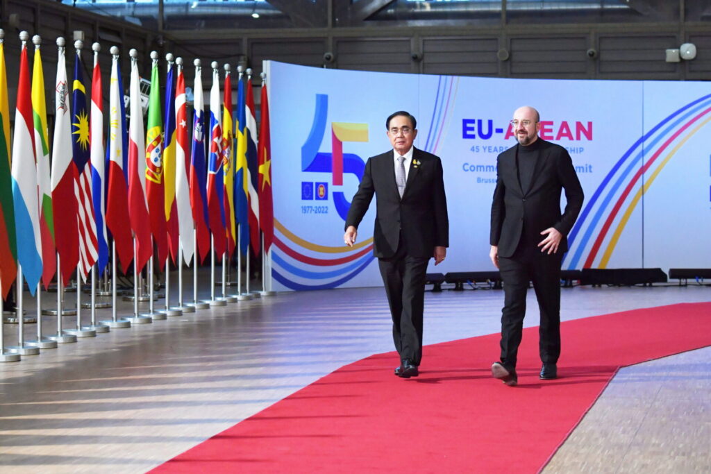 นายกรัฐมนตรี กล่าวว่า ถือเป็นครั้งแรกที่ผู้นำอาเซียนและประเทศสมาชิกสหภาพยุโรปมาประชุมกัน ซึ่งเกิดขึ้นในช่วงเวลาที่สหภาพยุโรปมียุทธศาสตร์เพื่อความร่วมมือในอินโด-แปซิฟิก เพิ่มบทบาทและปฏิสัมพันธ์ในภูมิภาคอินโด-แปซิฟิกกับอาเซียนและประเทศต่างๆ ในภูมิภาค รวมทั้งเป็นช่วงเวลาที่สำคัญที่จะมีการลงนามร่างกรอบความตกลงว่าด้วยความเป็นหุ้นส่วนและความร่วมมือรอบด้าน (Thai-EU Partnership and Cooperation Agreement: Thai-EU) หรือ PCA ที่สองฝ่ายจะใช้เป็นแผนความร่วมมือระหว่างกันต่อไป บนพื้นฐานค่านิยมร่วม ทั้งพหุภาคีนิยมที่ครอบคลุม ระเบียบระหว่างประเทศที่อิงกฎเกณฑ์ ประชาธิปไตย สิทธิมนุษยชน ธรรมาภิบาล และหวังว่าจะได้รับการสนับสนุนเป็นอย่างดีจากทั้ง EU และประเทศสมาชิกในการนำแผนปฏิบัติการอาเซียน-อียู ปี ค.ศ. 2023-2027 และ PCA ไปสู่การปฏิบัติอย่างเป็นรูปธรรม เพื่อประโยชน์ที่เท่าเทียมกันของสองฝ่ายต่อไป