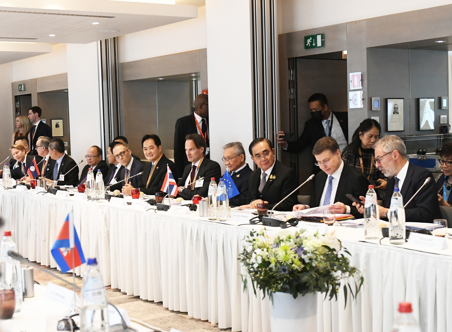 “เพ็ญพร พิพัฒโนทัย” ผู้สื่อข่าวสำนักข่าวไทย ติดตามภารกิจพล.อ.ประยุทธ์ จันทร์โอชา นายกรัฐมนตรีและรัฐมนตรีส่าการกระทรวงกลาโหม ร่วมการประชุมสุดยอดอาเซียน-สหภาพยุโรป สมัยพิเศษ เพื่อฉลองวาระครบรอบ 45 ปี ความสัมพันธ์อาเซียน-สหภาพยุโรป ที่กรุงบรัสเซลส์ ราชอาณาจักรเบลเยียม ระหว่างวันที่ 12 – 15 ธันวาคม 2565 รายงานว่า วานนี้ (13 ธ.ค.) เวลา 12.15 น. ตามเวลาท้องถิ่นกรุงบรัสเซลส์ ราชอาณาจักรเบลเยียม ซึ่งช้ากว่าประเทศไทย 6 ชั่วโมง นายกรัฐมนตรีร่วมการประชุมโต๊ะกลมผู้บริหารระดับสูงในช่วงอาหารกลางวัน (C-Suite Roundtable Luncheon) ซึ่งจัดโดยสภาธุรกิจสหภาพยุโรป-อาเซียน (EU-ASEAN Business Council: EU-ABC) โดยมีนายฝั่ม มิญ จิ๊ญ (H.E. Mr. Pham Minh Chinh) นายกรัฐมนตรีเวียดนาม และนายแฟร์ดีนันด์ โรมูอัลเดซ มาร์โคส จูเนียร์ (Mr. Ferdinand Romualdez Marcos Jr.) ประธานาธิบดีฟิลิปปินส์ เข้าร่วมประชมด้วย ที่โรงแรมโซฟิเทล บรัสเซลส์ กรุงบรัสเซลส์ ราชอาณาจักรเบลเยียม