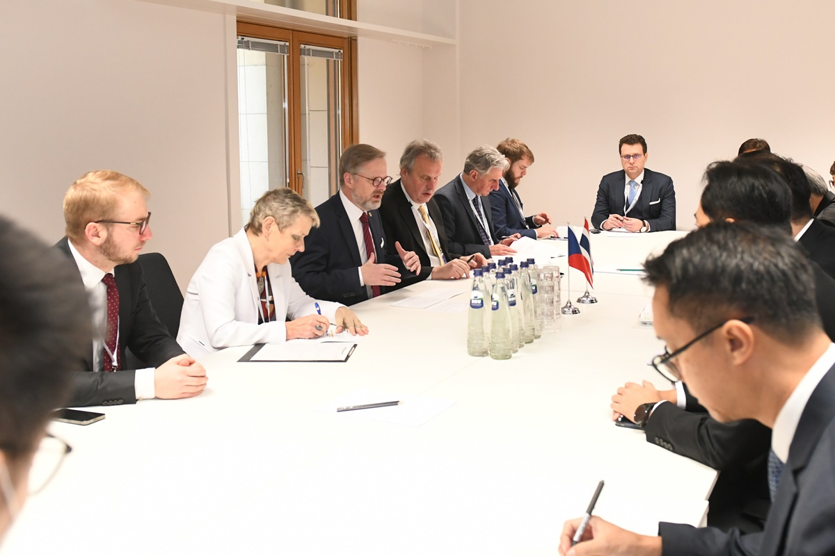 “เพ็ญพร พิพัฒโนทัย” ผู้สื่อข่าวสำนักข่าวไทย ติดตามการประชุมสุดยอดอาเซียน-สหภาพยุโรป สมัยพิเศษ เพื่อฉลองวาระครบรอบ 45 ปี ความสัมพันธ์อาเซียน-สหภาพยุโรป ของ พล.อ.ประยุทธ์ จันทร์โอชา นายกรัฐมนตรีและรัฐมนตรีว่าการกระทรวงกลาโหม ที่กรุงบรัสเซลส์ ราชอาณาจักรเบลเยียม ระหว่างวันที่ 12-15 ธันวาคม 2565 รายงานว่า วันนี้ (14 ธ.ค.) เวลา 10.00 น. ตามเวลาท้องถิ่น ซึ่งช้ากว่าประเทศไทย 6 ชั่วโมง ณ อาคาร Europa พล.อ.ประยุทธ์ จันทร์โอชา นายกรัฐมนตรีและรัฐมนตรีว่าการกระทรวงกลาโหม หารือกับนายเป็ตร์ ฟียาลา (Mr. Petr Fiala) นายกรัฐมนตรีสาธารณรัฐเช็ก เพื่อกระชับความสัมพันธ์ระหว่างกัน โดยสาธารณรัฐเช็กเป็นฝ่ายทาบทามการหารือ พร้อมหวังว่า ไทยและเช็กจะสามารถจัดการประชุมคณะกรรมาธิการร่วมว่าด้วยความร่วมมือด้านเศรษฐกิจ (Joint Commission on Economic Cooperation : JEC) ครั้งที่ 3 ได้โดยเร็ว เพื่อร่วมกันหารือแนวทางความร่วมมือที่มีอยู่ และความร่วมมือในสาขาใหม่ๆ ที่มีศักยภาพ