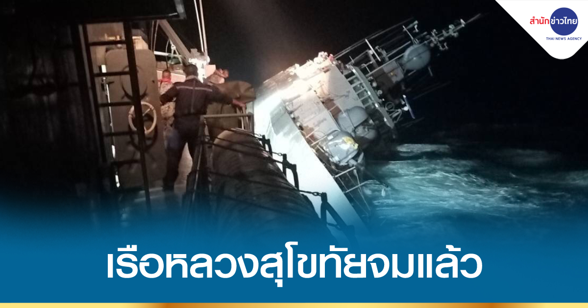 ประจวบคีรีขันธ์ 19 ธ.ค. – “เรือหลวงสุโขทัย” จมลงกลางทะเลอ่าวไทย หลังเผชิญคลื่นลมแรง ส่วนกำลังพลทั้งหมดปลอดภัย ด้านโฆษกกองทัพเรือ ชี้แจงเรือมีอาการเอียงจากคลื่นลมแรง สาเหตุจากเครื่องไฟฟ้าดับ เครื่องจักรใหญ่หยุดทำงาน ไม่สามารถควบคุมเรือได้ และทำให้น้ำเข้าเรืออย่างรวดเร็วจนเรือเอียง