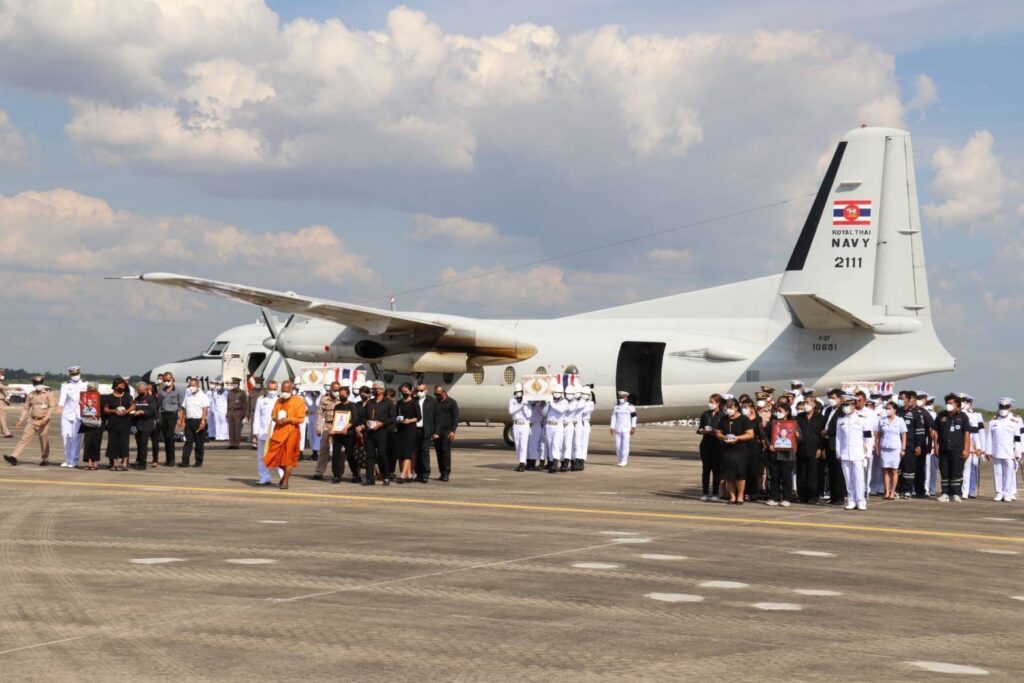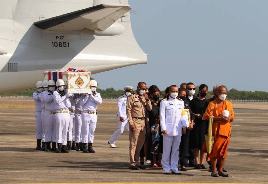 สนามบินอู่ตะเภา 30 ธ.ค.- ร่างกำลังพลกองทัพเรือ รายที่ 21 – 23 ที่เสียชีวิตในเหตุการณ์เรือหลวงสุโขทัยอับปาง ถึงสัตหีบ กองทัพเรือจัดพิธีรับร่างอย่างสมเกียรติ ประกอบพิธี พระราชทานน้ำหลวงอาบศพ เย็นนี้
