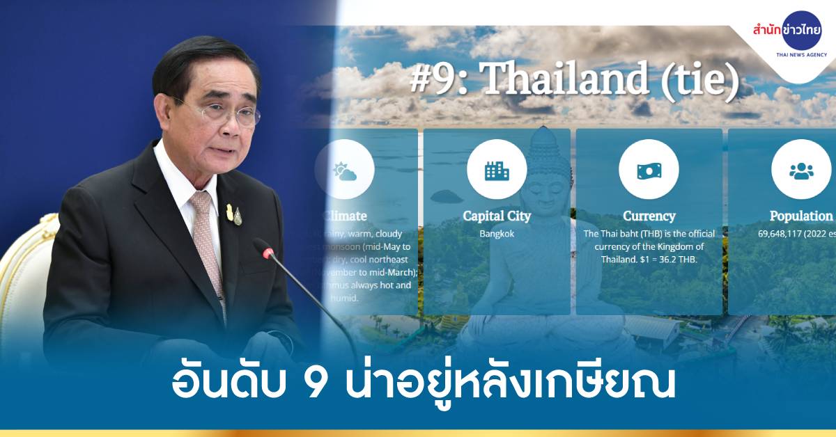 กทม. 7 ม.ค.-นายกฯ ยินดีนิตยสาร Forbes จัดประเทศไทยอยู่ในลำดับที่ 9 ของประเทศที่น่าอาศัยอยู่หลังเกษียณในปี 2566 และเป็นอันดับ 1 ของเอเชีย