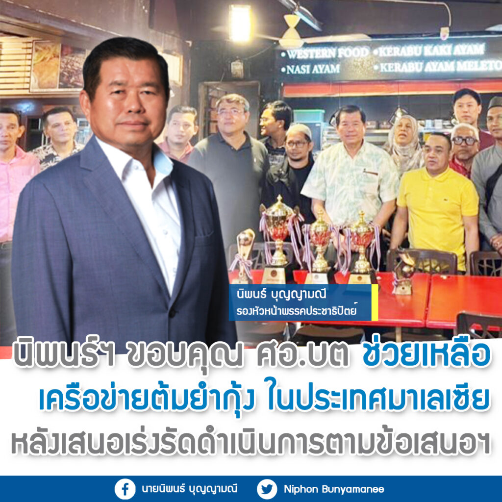 กทม. 8 ม.ค.- “นิพนธ์” ขอบคุณ ศอ.บต. ช่วยเหลือเครือข่ายต้มยำกุ้ง ในประเทศมาเลเซีย หลังเสนอเร่งรัดดำเนินการตามข้อเสนอฯ