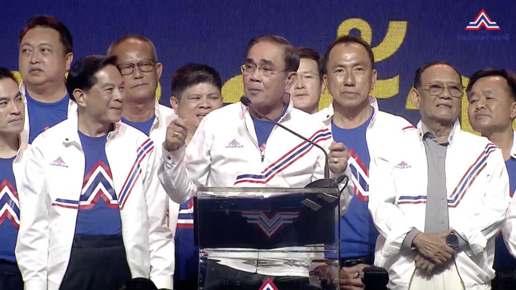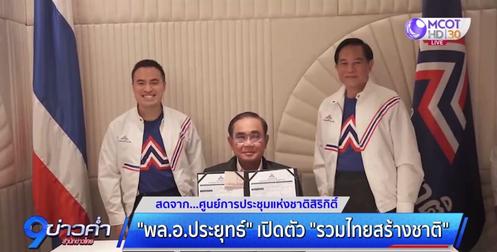 จากนายกรัฐมนตรีได้ลงนาม สมัครเป็นสมาชิกพรรครวมไทยสร้างชาติพร้อมสวมเสื้อแจ็กเก็ตรวมไทยสร้างชาติขึ้นเวที และกล่าวเปิดใจว่า ขอบคุณทุกคน ที่เดินมาท่ามกลางหัวใจเดียวกัน วันนี้เป็นครั้งแรกในการสมัครเป็นสมาชิกพรรคการเมือง ที่ได้ตัดสินใจเข้าร่วมคือพรรครวมไทยสร้างชาติ เพราะที่นี่คือประเทศไทย เป็นแผ่นดินที่ศักดิ์สิทธิ์ เกิดที่นี่ หากินที่นี่ และเรายังคงต้องรักษาผืนแผ่นดินนี้ไว้ให้ได้ และสารภาพว่ารู้สึกตื่นเต้น ซึ่งปกติไม่เคยกลัวอะไรอยู่แล้ว เพราะเป็นทหารมาทั้งชีวิตยืนยันทำเพื่อความเจริญก้าวหน้าของประเทศ และที่มาวันนี้เพราะประเทศไทยต้องไปต่อ