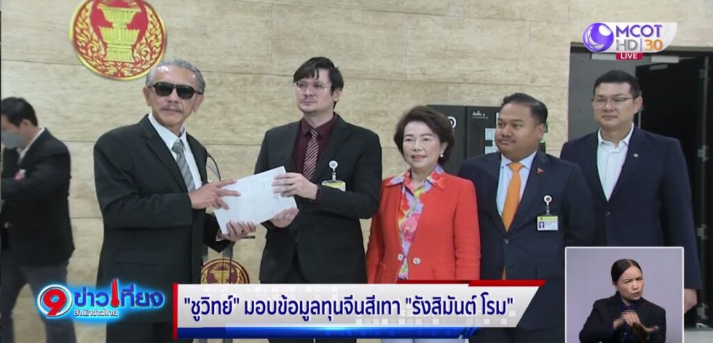 กรุงเทพฯ 11 ม.ค.- “ชูวิทย์” นำข้อมูลทุนจีนสีเทา มอบให้ “รังสิมันต์ โรม” ส.ส.พรรคก้าวไกล เพื่อใช้ในการอภิปรายทั่วไป เชื่อข้อมูลเหล่านี้อาจล้มรัฐบาลได้