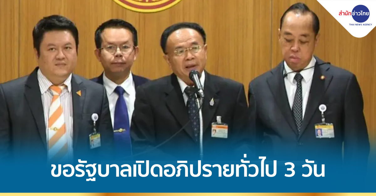รัฐสภา 12 ม.ค. – ฝ่ายค้านชี้อภิปรายทั่วไปตาม ม.152 วันที่ 15 ก.พ. ช้าไป ขอเลื่อนมาต้นเดือน ก.พ. และขอใช้เวลา 3 วัน อ้างข้อมูลเยอะมาก