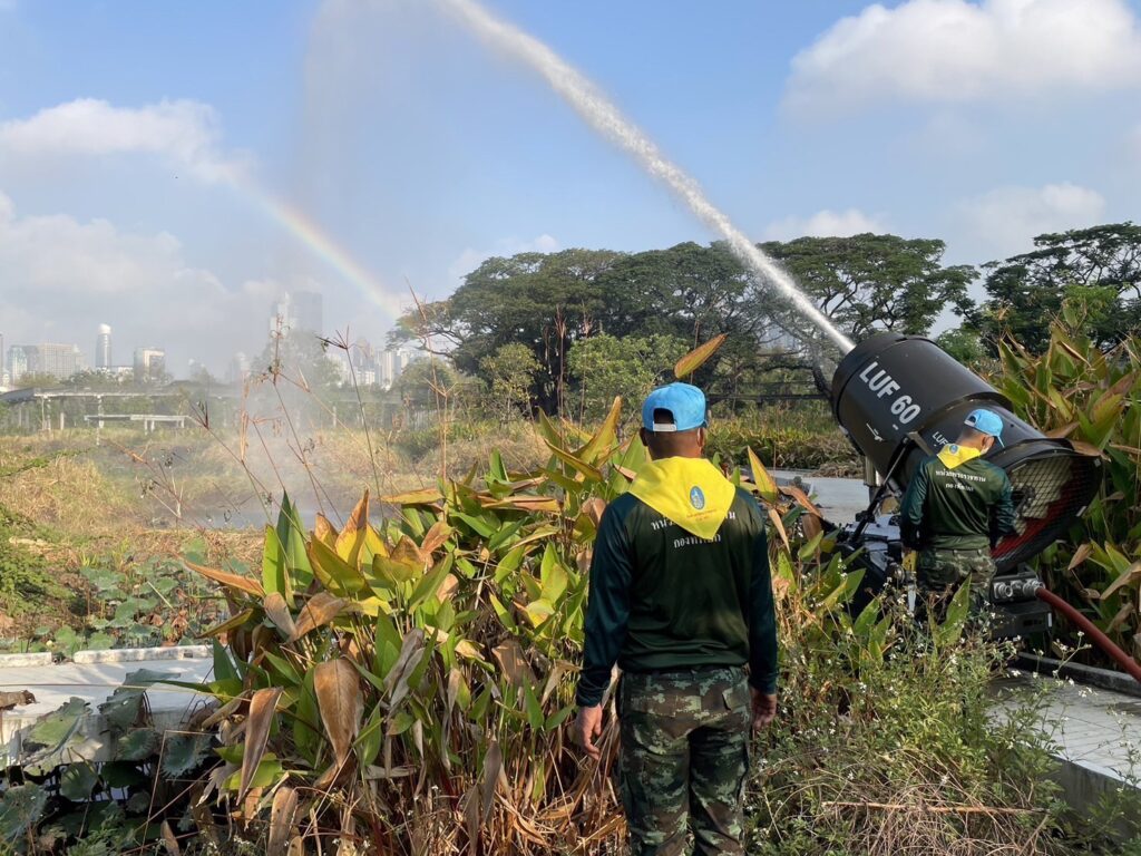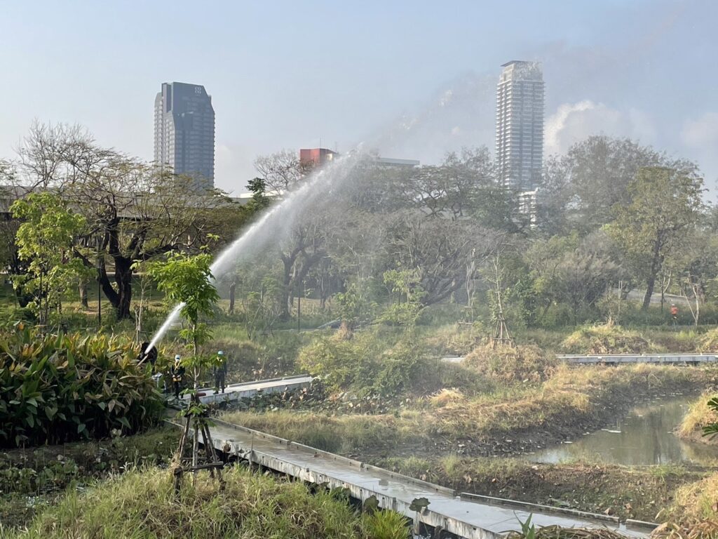 พล.ต.หญิงศิริจันทร์ งาทอง รองโฆษกกองทัพบก เปิดเผยว่า กองทัพบกดำรงภารกิจช่วยเหลือประชาชนในกิจกรรมจิตอาสา รวมทั้งการพัฒนาพื้นที่ต่าง ๆ อย่างต่อเนื่อง และจากสภาพทางนิเวศวิทยาของสวนป่าเบญจกิติ เขตคลองเตย กรุงเทพฯ ที่เป็นข้อห่วงใยของสังคม ซึ่งหลายภาคส่วนมีความประสงค์จะร่วมกันดูแลพื้นที่ดังกล่าว วานนี้(12 ม.ค.)กองทัพบกได้มอบให้กองทัพภาคที่ 1 และกรมการทหารช่าง ร่วมกับสำนักสิ่งแวดล้อม กรุงเทพมหานคร และกำลังพลจิตอาสา นำอุปกรณ์ทางการช่าง ประกอบด้วย รถบรรทุกน้ำ 4 คัน และรถฉีดน้ำในอาคารควบคุมระยะไกล 2 คัน และรถบรรทุกน้ำจากสำนักสิ่งแวดล้อม กทม. 9 คัน ร่วมกันปรับปรุงพื้นที่ ฉีดพ่นน้ำเพิ่มความชุ่มชื้นให้ต้นไม้และพืชคลุมดิน โดยเฉพาะบริเวณ “เกาะต้นไม้และพืชไม้ในบ่อตื้น” รวมทั้งติดตั้งเครื่องสูบน้ำ 3 เครื่อง สูบน้ำจากคลองไผ่สิงโตเข้าสู่บึงบำบัด ก่อนส่งน้ำที่บำบัดแล้วเข้าสระน้ำในสวนป่า ควบคู่กับการผันน้ำดีเข้ามาเติมในคลองไผ่สิงโตซึ่งดำเนินการโดย สำนักการระบายน้ำ กรุงเทพมหานคร