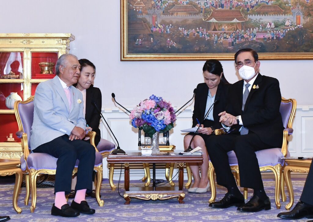 นายซะซะคะวะ โยเฮ (Mr.SASAKAWA Yohei) ผู้แทนพิเศษของรัฐบาลญี่ปุ่นด้านการปรองดองแห่งชาติในเมียนมา และประธาน Nippon Foundation เข้าเยี่ยมคารวะพลเอกประยุทธ์ จันทร์โอชา นายกรัฐมนตรีและรัฐมนตรีว่าการกระทรวงกลาโหม ในโอกาสเยือนไทย