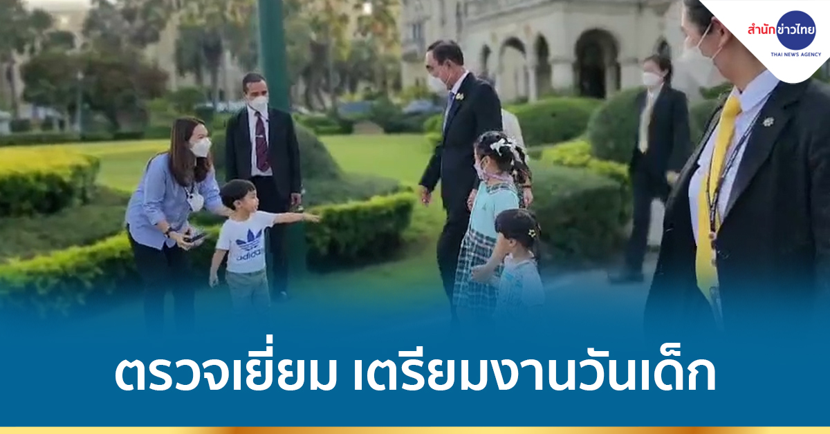 ทำเนียบ 13 ม.ค.- นายกฯ จูงมือลูกหลาน ขรก.ทำเนียบฯ ตรวจความเรียบร้อย ก่อนเริ่มงานวันเด็ก พรุ่งนี้ (14 ม.ค.66) พาชมไดโนเสาร์จำลอง บอกเด็กอย่ากลัว เพราะตายไปนับล้านปีแล้ว