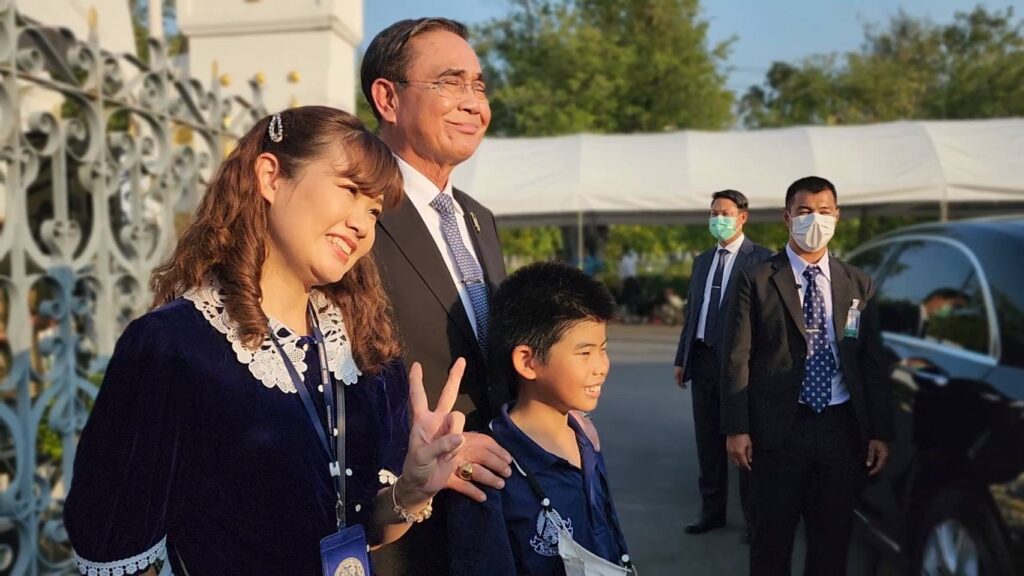 นายกรัฐมนตรี ได้เดินจูงมือเด็กๆ ชวนไปถ่ายรูปกับไดโนเสาร์จำลอง พร้อมกล่าวกับเด็กๆว่า “ไม่ต้องกลัวไดโนเสาร์ เพราะตายไปแล้วนับล้านปี” ทั้งนี้มีเด็กกลัวนายกฯ แม้นายกฯ จะพยายามเดินเข้ามาถ่ายรูปด้วย แต่เด็กคนดังกล่าวได้เดินออกมา จากนั้นนายกฯ ได้ทักทายเด็กๆ ที่อยู่ในรถโบราณด้วย
