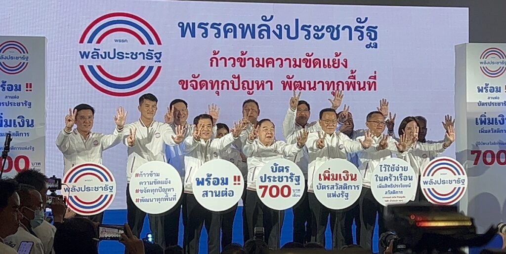 หัวหน้าพรรคพลังประชารัฐ ประกาศเดินหน้านโยบายบัตรสวัสดิการแห่งรัฐ 700 บาทต่อเดือน ให้กับประชาชน ในส่วนงบประมาณที่จะนำมาใช้เพื่อเพิ่มวงเงินในบัตร จะนำมาจากงบประมาณในช่วง 3 เดือนสุดท้าย ของงบประมาณปี 2566 หลังจากได้รับเลือกตั้ง ทั้งนี้หากมีผู้ได้รับสิทธิ์ ประมาณ 18 ล้านคน คาดว่าจะต้องใช้งบประมาณเดือนละ 1.2 หมื่นล้านบาท หรือ ปีละ 1.5 แสนล้านบาท โดยหากได้รับ เลือกและเป็นแกนนำในการจัดตั้งรัฐบาลพร้อมที่จะเดินหน้านโยบายนี้ทันที พร้มกันนี้คณะกรรมการบริหารพรรครวมถึงรัฐมนตรีได้ถ่ายรูปร่วมกันและ ชู 7 นิ้ว ที่สื่อถึงนโยบายบายแรก บัตรสวัสดิการแห่งรัฐ 700 บาทต่อเดือน