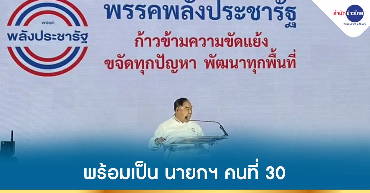 พปชร 17 ม.ค.-พล.อ.ประวิตร ประกาศพร้อมเป็นนายกฯ คนที่ 30 หากประชาชนให้โอกาส ยันจับมือได้กับทุกพรรค ตามนโยบายก้าวข้ามความขัดแย้ง ประเดิมเปิดนโยบายแรกเพิ่มวงเงินบัตรสวัสดิการแห่งรัฐ 700 บาท