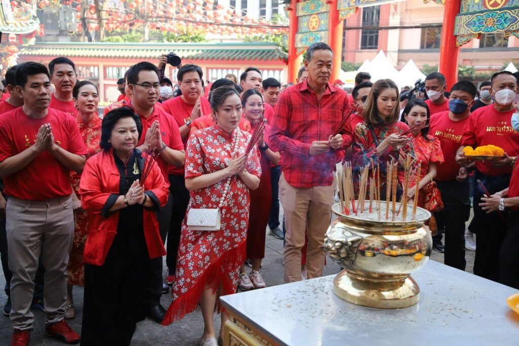 10.00 น. ช่วงเช้าวันนี้ พรรคเพื่อไทยนำโดย น.ส.แพทองธาร ชินวัตร หัวหน้าครอบครัวเพื่อไทย พร้อมด้วย นายเศรษฐา ทวีสิน นักธุรกิจด้านอสังหาริมทรัพย์ ซึ่งเป็นบุคคลที่ปรากฏเป็นกระแสข่าวว่าจะเป็นหนึ่งในแคนดิเดตนายกฯ ของพรรคเพื่อไทย, นางพวงเพ็ชร ชุนละเอียด ประธานคณะกรรมการประสานงานด้านการเมืองพื้นที่ กทม. นำ ส.ส. และว่าที่ผู้สมัคร ส.ส. อาทิ นาย พลภูมิ วิภัติภูมิประเทศ, กานต์กนิษฐ์ แห้วสันตติ ,ธีรรัตน์ สำเร็จวาณิชย์, นายวัน อยู่บำรุง เป็นต้น ลงพื้นที่เยาวราช เพื่อสักการะสิ่งศักดิ์สิทธิ์เนื่องในวันตรุษจีน และ พบปะพูดคุยกับ นักธุรกิจในย่านเยาวราช