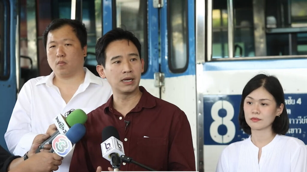 นายพิธา ลิ้มเจริญรัตน์ หัวหน้าพรรคก้าวไกล พร้อมด้วย น.ส.ภัทราภรณ์ เก่งรุ่งเรืองชัย ส.ก. เขตบางซื่อ และนายพุทธิพัชร์ ธันยาธรรมนนท์ ส.ก. เขตยานนาวา พรรคก้าวไกล แถลงเปิดตัวกฎหมาย “รถเมล์อนาคต” ซึ่งเป็นข้อบัญญัติของกรุงเทพมหานคร ที่จะกำหนดให้รถเมล์ที่วิ่งในกทม. ต้องเป็นรถไฟฟ้า หรือ EV ทั้งหมด โดยมีระยะเวลาสำหรับการเปลี่ยนผ่าน 7 ปี เพื่อบรรลุเป้าหมายลดฝุ่นละออง PM2.5 และลดการปล่อยก๊าซเรือนกระจก รวมถึงจะพัฒนาคุณภาพการให้บริการรถเมล์ ซึ่งเป็นระบบขนส่งมวลชนที่มีผู้ใช้งานหลักล้านคน