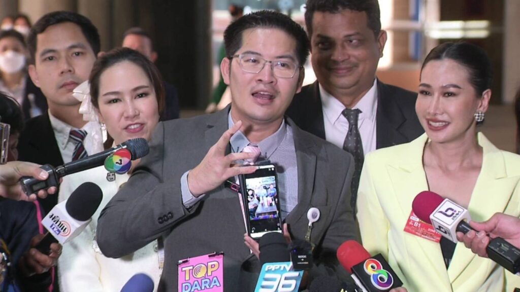 รัฐสภา 25 ม.ค.- “เต้ มงคลกิตติ์” เปิดตัว “กุ้งพลอย” ร่วมงานพรรคไทยศรีวิไลย์ หวังผลักดันนโยบายแก้ปัญหาการพนันออนไลน์ แฉ มีทุนสีเทาหนุนพรรคใหญ่ ขอจับตาคนเดินตามนักการเมือง