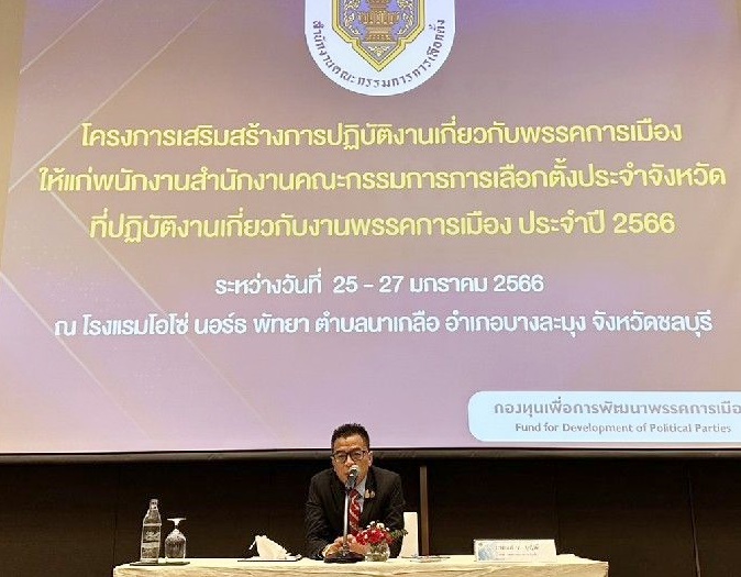 สำนักงานคณะกรรมการการเลือกตั้ง(กกต.) จัดอบรมตามโครงการเสริมสร้างการปฏิบัติงานเกี่ยวกับพรรคการเมืองให้แก่พนักงานสำนักงานกกต.ประจำจังหวัดที่ปฏิบัติหน้าที่เกี่ยวกับพรรคการเมือง ประจำปี 2566 โดยมีนายสันทัด ศิริอนันต์ไพบูลย์ กกต. เป็นประธานในพิธีเปิดการอบรม ซึ่งมีวัตถุประสงค์เพื่อให้พนักงานของสำนักงานกกต.ประจำจังหวัดที่ปฏิบัติงานเกี่ยวกับพรรคการเมือง และบุคลากรช่วยปฏิบัติงานโครงการตรวจติดตามการดำเนินกิจกรรมของพรรคการเมืองสาขาพรรคการเมืองและตัวแทนพรรคการเมืองประจำจังหวัด ทราบถึงบทบาทและหน้าที่ในงานพรรคการเมือง ซึ่งจะช่วยให้การปฏิบัติงานของพนักงานมีประสิทธิภาพและเป็นไปในแนวทางเดียวกัน