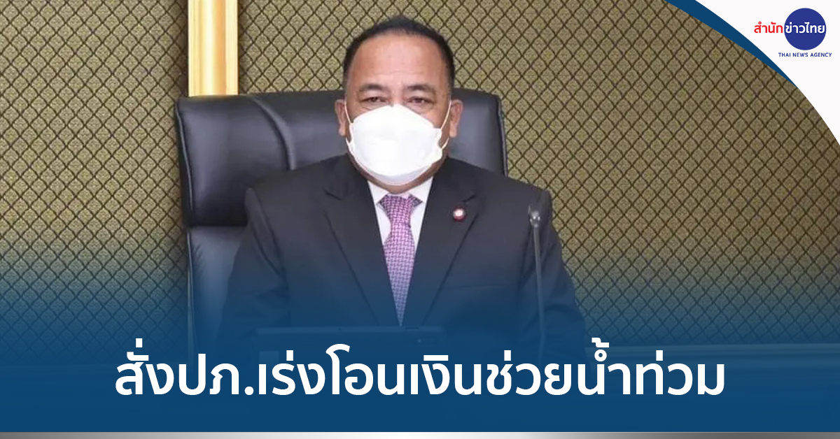 กระทรวงมหาดไทย 27 ม.ค.- รมช.มหาดไทย เร่งช่วยประชาชน “สั่งปภ.โอนเงินช่วยน้ำท่วม” ตามเกณฑ์ปี65 ด่วนที่สุด