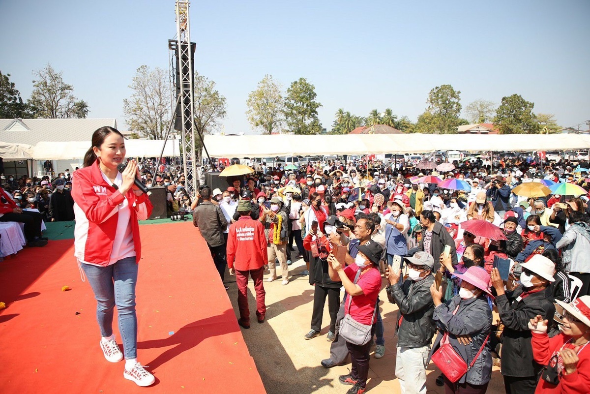 น.ส.แพทองธาร ชินวัตร หัวหน้าครอบครัวเพื่อไทย และประธานคณะที่ปรึกษาด้านการมีส่วนร่วมและนวัตกรรม พรรคเพื่อไทย ประกาศกลางเวทีปราศรัยงาน “แลนด์สไลด์เพื่อไทยเท่านั้น” บริเวณเทศบาลอำเภอท่าบ่อ จังหวัดหนองคาย ในช่วงเช้าวันนี้ (28 ม.ค.66) แม้ว่าอากาศจะร้อนด้วยแดดที่แรง แต่พี่น้องประชาชนราว 7,000 คน ยังมาฟังการปราศรัยครั้งนี้อย่างหนาแน่น
