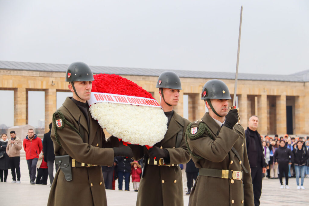 ที่ สุสานอะนิตกาเบอร์ กรุงอังการา ประเทศตุรกี นายดอน ปรมัตถ์วินัย รองนายกรัฐมนตรีและรัฐมนตรีว่าการกระทรวงการต่างประเทศ เป็นตัวแทนรัฐบาลไทย วางพวงมาลาแสดงความระลึกถึงนายมุสทาฟา เคมัล อตาเติร์ก ประธานาธิบดีคนแรกของตุรกี ในโอกาสเดินทางเยือนตุรกี เพื่อประชุมคณะกรรมการร่วมว่าด้วยความร่วมมือทางเศรษฐกิจและวิชาการไทย-ตุรกี ครั้งที่ 4 ระหว่างวันที่ 25-26 ม.ค. 2566