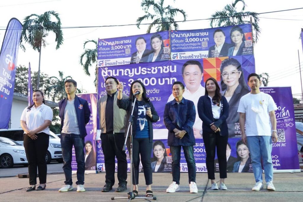 คุณหญิงสุดารัตน์ เกยุราพันธุ์ หัวหน้าพรรคไทยสร้างไทย ลงพื้นที่เขต บึงกุ่ม น.ต.ศิธา ทิวารี เลขาธิการพรรคไทยสร้างไทย นายการุณ โหสกุลอดีต ส.ส.กทม. พร้อมนายแมน เจริญวัลย์ ว่าที่ผู้สมัคร ส.ส.เขตบึงกุ่ม พบปะพี่น้องประชาชน โดยได้เดินตลาดพบพ่อค้าแม่ขายที่ชุมชน เคหะนวมินทร์ จากนั้นได้ปราศรัยเน้นย้ำนโยบายบำนาญประชาชนเดือนละ 3,000 บาท ซึ่งเป็นนโยบายที่สร้างความมั่นคงให้กับผู้สูงวัย ช่วยให้ลูกหลานสามารถตั้งตัวได้เร็วขึ้น ซึ่งได้รับความสนใจจากพี่น้องชาวบึงกุ่มคันนายาว ร่วมฟังการปราศรัยกว่า 300 คน