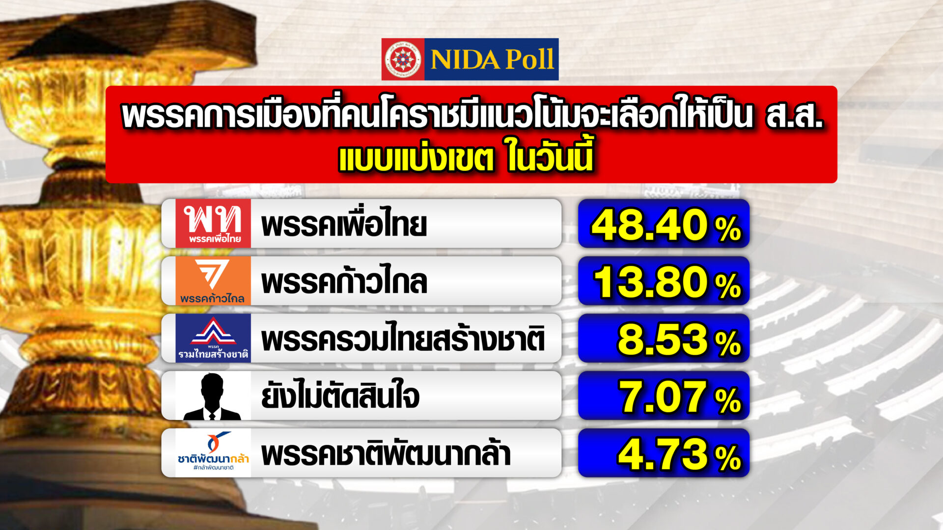 กรุงเทพฯ 5 ก.พ. – “นิด้าโพล” เปิดเผยผลสำรวจ เรื่อง “คนโคราชเลือกพรรคไหน” พบว่าพรรคเพื่อไทย นำเป็นอันดับ 1 ทั้ง ส.ส. แบบแบ่งเขต และบัญชีรายชื่อ