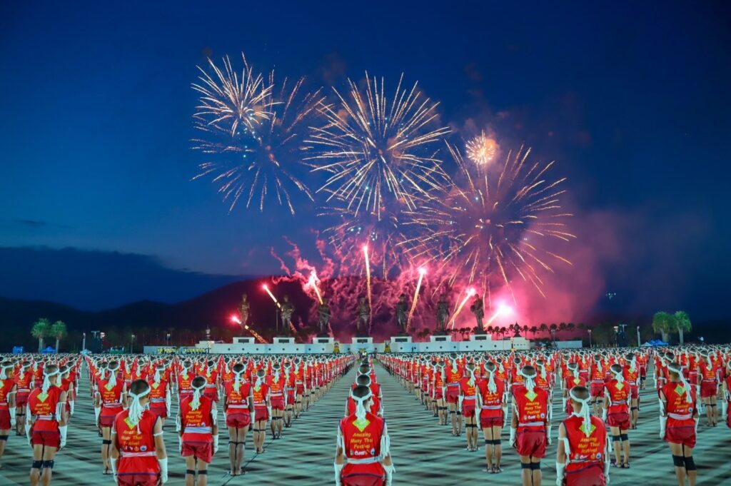 พร้อมชมการบันทึกสถิติโลก ทหาร 3,660 นาย ไหว้ครูมวยไทย หนึ่งใน Soft Power ของราชอาณาจักรไทย ซึ่งภายหลังผู้แทนประกาศว่า การบันทึกทำสำเร็จ ได้มอบใบประกาศให้กับนายกรัฐมนตรี ท่ามกลางเสียงปรบมือแสดงความยินดีของประชาชนและนักท่องเที่ยวที่มาชม จากนั้นมีการจุดพลุเฉลิมฉลองอย่างสวยงาม.-สำนักข่าวไทย