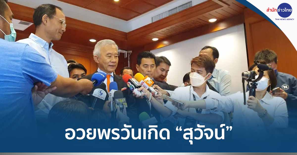 “เสถียรภาพการทางการเมืองขณะนี้อ่อนแอ กลไกสภาฯ อ่อนแอ ไม่สามารถประชุมหาทางออกให้ประชาชนได้ จึงต้องเอาเสถียรภาพทางการเมืองเป็นตัวตั้ง เพื่อเอาการเมืองที่เข้มแข็งมาสู้กับกับวิกฤติ เราต้องช่วยกันสร้างบรรยากาศทางการเมือง” นายสุวัจน์ กล่าว ผู้สื่อข่าวรายงานว่า งานครบรอบวันเกิดนายสุวัจน์ปีนี้ ไม่ได้เปิดบ้านเหมือนเช่นทุกปี เนื่องจากเข้าสู่โหมดของการเลือกตั้ง จึงมีเฉพาะแกนนำพรรรชาติพัฒนากล้า นำโดยนายกรณ์ จาติกวณิช หัวหน้าพรรค นายเทวัญ ลิปตพัลลภ เลขาธิการพรรค และผู้สมัคร นำกระเช้าดอกไม้มามอบให้กับนายสุวัจน์
