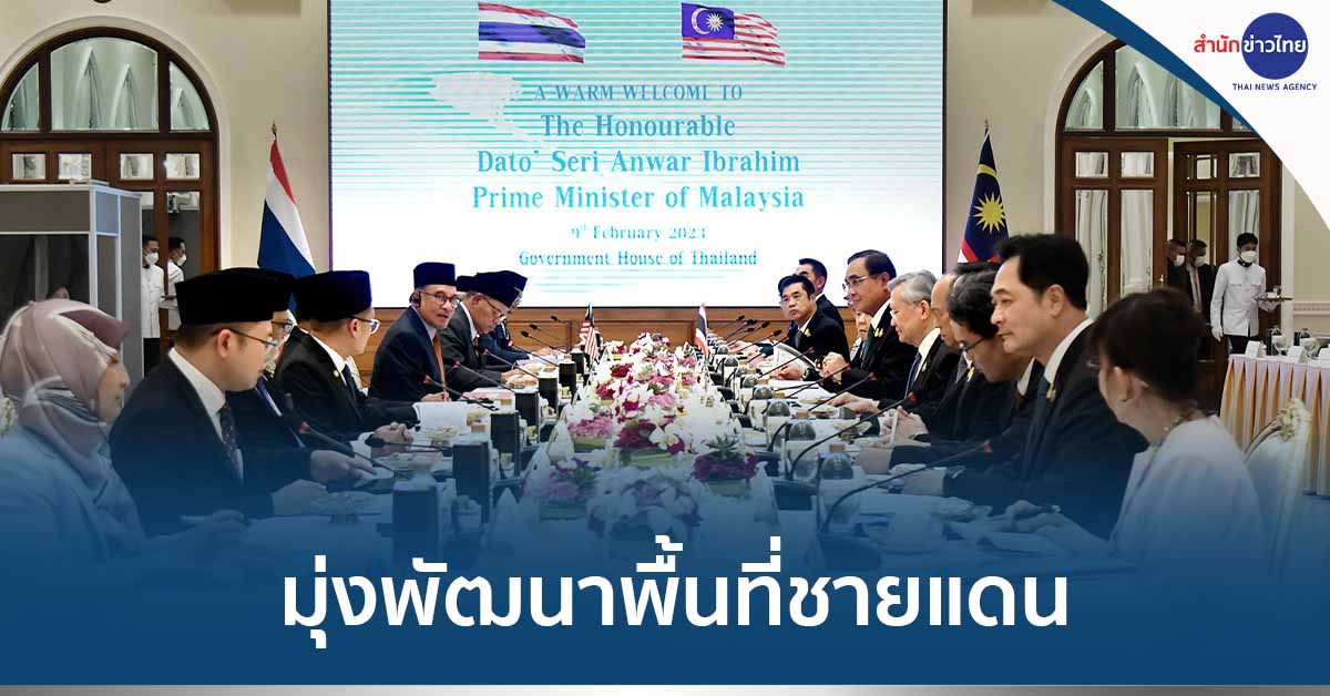 ทำเนียบ 9 ก.พ.- แถลงร่วม นายกฯ ไทย – มาเลเซีย มุ่งพัฒนาพื้นที่ชายแดนเป็นเสาหลักแห่งความมั่งคั่ง และ “แผ่นดินทอง” สร้างความสุขสงบและความเป็นอยู่ที่ดีแก่ประชาชาชนทั้งสองประเทศ