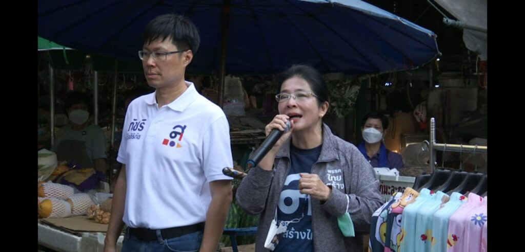 คุณหญิงสุดารัตน์ เกยุราพันธุ์ หัวหน้าพรรคไทยสร้างไทย พร้อมด้วยนายภัชริ นิจสิริภัช ลงพื้นที่เขตธนบุรี เดินตลาดเช้าวัดกลาง (วัดจันทารามวรวิหาร) ถนนเทอดไท พร้อมพบปะประชาชนในพื้นที่ และมาให้กำลังใจ แนะนำพรรคไทยสร้างไทย เพื่อการเปลี่ยนแปลง ที่ไม่สร้างความวุ่นวาย ให้ประเทศชาติเสียหาย แต่จะสร้างโอกาสให้ชีวิต ให้เศรษฐกิจที่ดีกว่า โดยเฉพาะปัญหาหนี้นอกระบบ ที่เราจะมีกองทุนเครดิตประชาชน ที่ให้กู้ไปล้างหนี้นอกระบบ หรือเป็นทุนในการทำมาหากิน