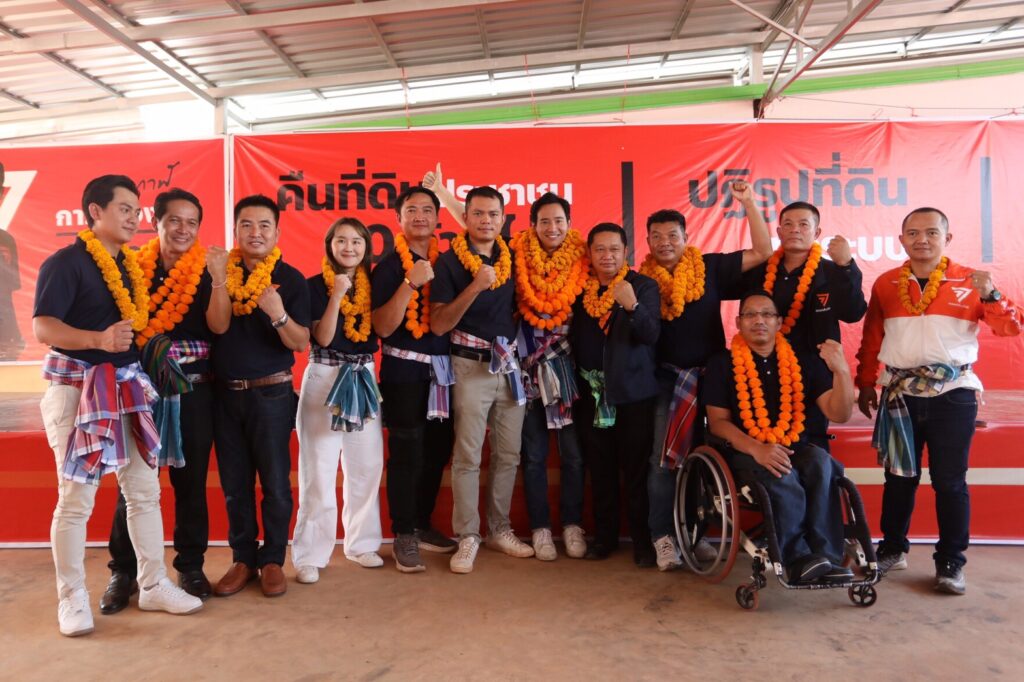 นายพิธา ยังกล่าวถึงปัญหาด้านที่ดินและการเกษตร ว่าที่นี่มีระบบชลประทานครอบคลุมพื้นที่เกษตรเพียงแค่ 1% เท่านั้น และนี่ยังเป็นปัญหาร่วมของหลายๆ พื้นที่เกษตรในประเทศนี้ ที่ผ่านมา พรรคที่เป็นรัฐบาลบางพรรคมีสโลแกนออกมาว่ามีเราไม่มีแล้ง มีที่ทำกิน ไม่มีจน บอกว่าจะจริงจังกับการแก้ปัญหาแล้งให้มากขึ้น ตนไม่แน่ใจว่าเป็นการวางยาหรือไม่ แต่การพูดแบบนี้แปลว่า 8 ปีที่ผ่านมารัฐบาลไม่ได้จริงจังกับการแก้ปัญหาของเกษตรกรใช่หรือไม่ ไม่ว่าจะเป็นที่ดิน น้ำ หรือหนี้สิน