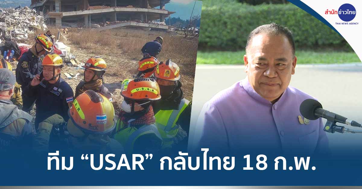 ทำเนียบ 14 ก.พ.- “นริศ” เผย ทีม “USAR” เตรียมกลับไทย หลังเสร็จภารกิจค้นหาผู้รอดชีวิตเหตุแผ่นดินไหวตุรกี 18 กุมภาพันธ์นี้ เตรียมถอดบทเรียน เพิ่มศักยภาพ ปรับใช้กับภัยพิบัติอื่น