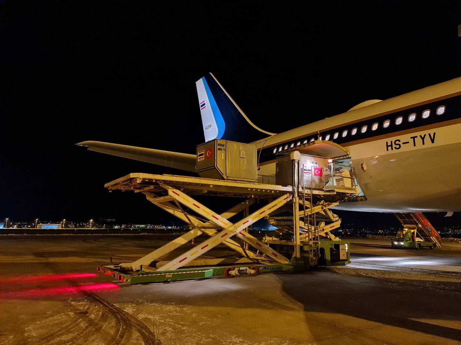 ผู้สื่อข่าวรายงานว่า ภายหลังคณะของนาวาอากาศเอก อนุรักษ์ รมณารักษ์ รองผู้อำนวยการสำนักยุทธการและการฝึก กรมยุทธการทหารอากาศ ในฐานะหัวหน้าคณะทำงานช่วยเหลือด้านมนุษยธรรมและอพยพคนไทยจากเหตุแผ่นดินไหว ณ สาธารณรัฐตุรกี (ส่วนของกองทัพอากาศ) ออกจากท่าอากาศยานทหาร เมื่อคืนที่ผ่านมา เดินทางถึงสนามบินอังการา สาธารณรัฐตุรกีแล้ว ช่วงเช้าวันนี้ (16 ก.พ.) เวลา 05.20 น. ตามเวลาท้องถิ่น หรือ 09.20 น. ตามเวลาประเทศไทย โดยมี นายอภิรัตน์ สุคนธาภิรมย์ ณ พัทลุง เอกอัครราชทูต ณ กรุงอังการา และ นายจุมา โอรุลลุโอก์ลู รัฐมนตรีว่าการกระทรวงการคลัง สาธารณรัฐตุรกี (Mr. Cuma Orulluoglu Ankara Treasurer, Ministry of Treasury and Finance of the Republic of Türkiye) ให้การต้อนรับ และประสานการปฏิบัติในการนำส่งสิ่งของพระราชทานของพระบาทสมเด็จพระเจ้าอยู่หัว และสมเด็จพระนางเจ้าฯ พระบรมราชินี เพื่อนำไปช่วยเหลือและบรรเทาทุกข์แก่ประชาชนชาวตุรกีที่ประสบเหตุภัยพิบัติแผ่นดินไหว ตลอดจนอำนวยความสะดวกให้แก่คนไทยที่มีความประสงค์จะเดินทางกลับประเทศ ด้วยเที่ยวบินของกองทัพอากาศ