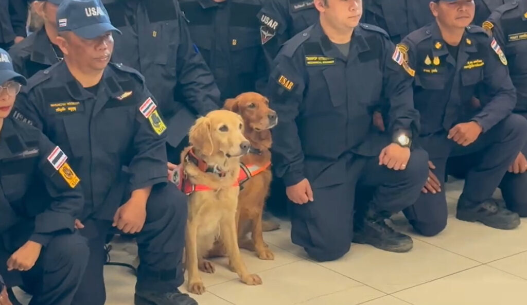 จากนั้น นายกรัฐมนตรี ได้มอบเหรียญที่ระลึกจากทำเนียบรัฐบาล ให้กับทีม USAR Thailand พร้อมกับมอบเหรียญให้กับสุนัขกู้ภัย K9 น้องเซียร่าและซาฮาร่า โดยจับขาหน้าเพื่อให้มารับเหรียญแล้วระบุว่า “This for you ok ok” และพูดคุยกับเซียร่าและซาฮาร่าอีกว่า “สุขภาพแข็งแรงนะลูกนะ อายุอายุยืนยาวนะลูก ทำประโยชน์ให้กับประเทศต่อไป” ก่อนที่จะจับมือกับผู้ดูแลและขอบคุณอีกครั้งหนึ่ง