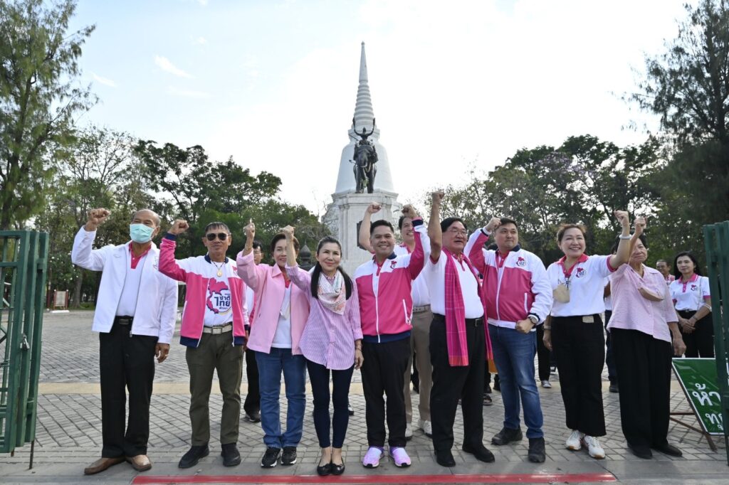 นายวราวุธ ศิลปอาชา หัวหน้าพรรคชาติไทยพัฒนา พร้อมด้วย นายประภัตร โพธสุธน เลขาธิการพรรค และ น.ส.กัญจนา ศิลปอาชา ประธานที่ปรึกษาหัวหน้าพรรค นายสรชัด สุจิตต์ ส.ส.สุพรรณบุรี เขต1 และสมาชิกพรรค ร่วมกันบวงสรวงสักการะพระบรมราชานุสาวรีย์สมเด็จพระนเรศวรมหาราช ทรงยุทธหัตถี ก่อนเดินพบปะประชาชนกว่า 2 พันคนที่มาร่วมฟังปราศรัย โดยมี คุณหญิงแจ่มใส ศิลปอาชา ภรรยานายบรรหาร ศิลปอาชา อดีตนายกรัฐมนตรี คนที่ 21 และนายจองชัย เที่ยงธรรม อดีต ส.ส.สุพรรณบุรี พรรคชาติไทย มาให้กำลังใจ