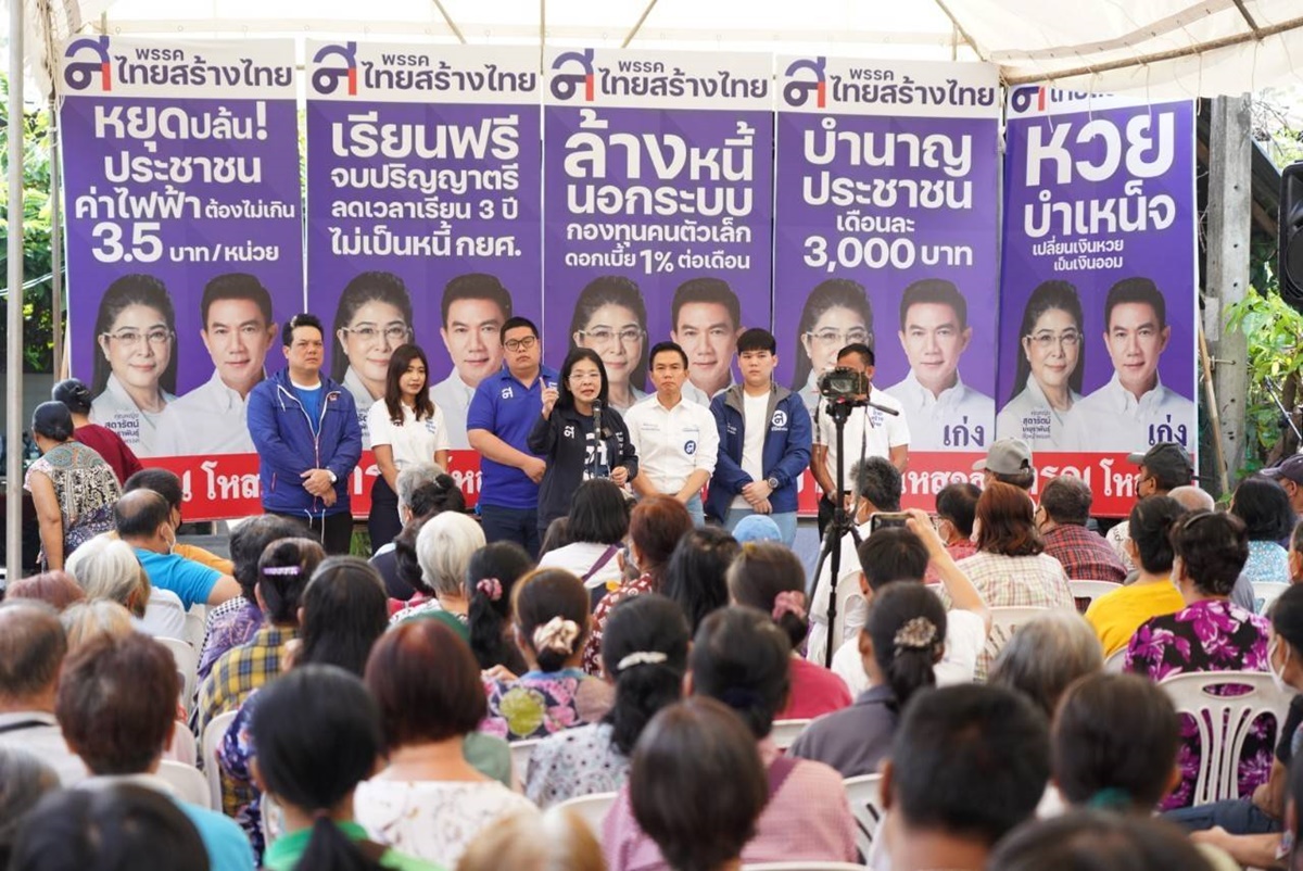 คุณหญิงสุดารัตน์ เกยุราพันธุ์ หัวหน้าพรรคไทยสร้างไทย พร้อมนายการุณ โหสกุล แกนนำพรรคไทยสร้างไทย ลงพื้นที่เขตดอนเมือง พบประชาชนที่ตลาดฝั่งโขง พร้อมปราศรัยประกาศนโยบาย “แก้หนี้เติมทุน” ด้วย “กองทุนสร้างไทย” 300,000 ล้านบาท เพื่อช่วยประชาชนสามารถฟื้นธุรกิจตั้งต้นทำมาหากินกันได้ใหม่