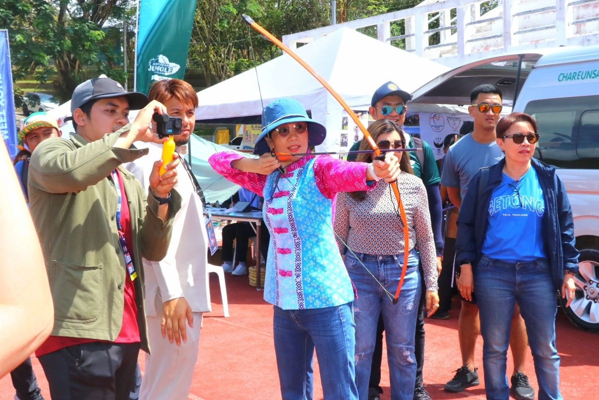 ที่สนามกีฬากลางเทศบาลเมืองเบตง จ.ยะลา นางสาวรัชดา ธนาดิเรก รองโฆษกรัฐบาล ในฐานะผู้แทนพิเศษของรัฐบาลในการแก้ไขปัญหาจังหวัดชายแดนภาคใต้ ด้านประสานการมีส่วนร่วม เยี่ยมชมการแข่งขันกีฬายิงธนูเทรดดี้ (กีฬายิงธนูโบราณ) Amazean Archery 2023 @BETONG ซึ่งจัดขึ้นภายใต้การแข่งขันวิ่งเทรล Amazean Jungle Thailand by UTMB 2023 ระหว่างวันที่ 17-19 กุมภาพันธ์ 2566 โดยภายในงานมีการแข่งขันประเภทต่างๆ อาทิ การแข่งขัน Fun Game, Night shooting ซึ่งนักกีฬายิงธนูจะใส่ชุดพื้นเมือง ชุดประจำถิ่นหรือชุดรายอ และผ้าลือปัส หรือสมูตา ตลอดที่ทำการแข่งขัน ถือเป็นเอกลักษณ์เฉพาะของกีฬาธนูเทรดดี้ด้วย